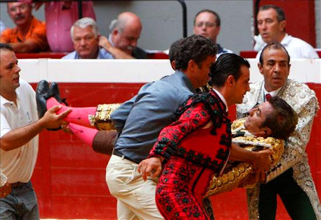 angustia. Cogido, volteado y revolcado por el cuarto de corrida, cuando ya el